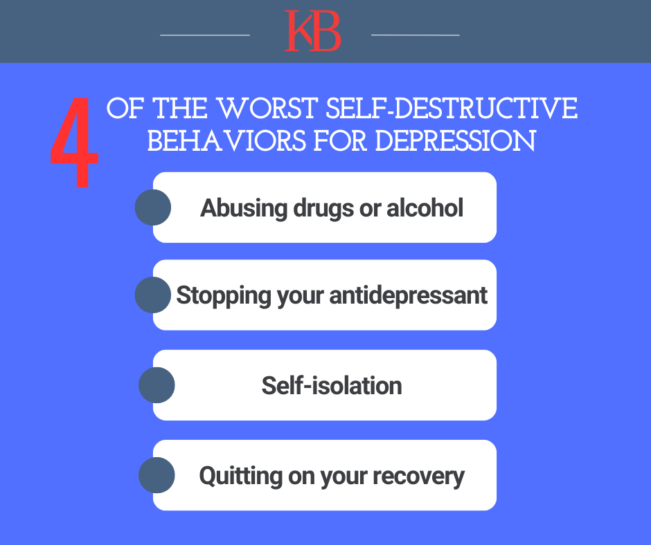 Stopping self-destructive behaviors takes practice. But you won’t want to continue making these mistakes if you’re living with depression. The trick is to learn to confront negative thoughts, redirect negativity, and learn to live a recovery lifestyle that supports a healthy life with depression.